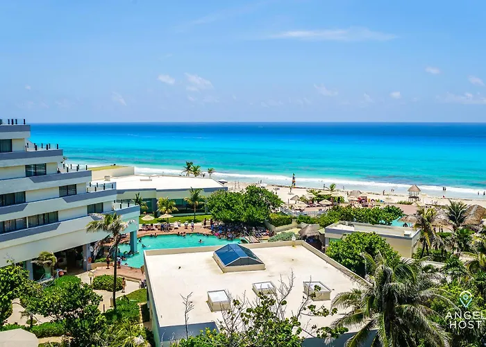 Fabulous Oceanview Suite Access To Beach & Pools坐落于Zona Hotelera区,距Playa Marlin很近.它设有游泳池. 这栋别墅室内还配有内庭院,咖啡机/煮茶机 和高速上网以及设施齐全的厨房.